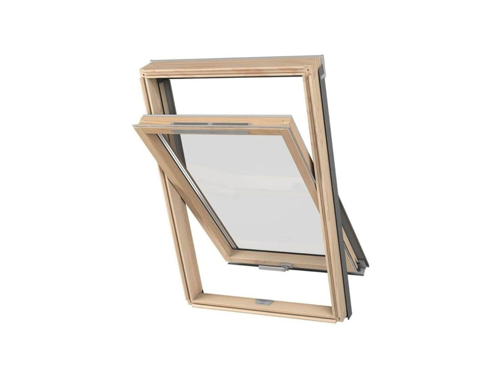 Okno DAKEA BETTER ENERGY obsahuje trojsklo a dvoukomorovou konstrukci se středovou osou otáčení, která poskytuje vynikající izolaci obytných prostor. Dvoukomorová konstrukce snižuje tepelné ztráty v zimě a omezuje přehřívání v létě, čímž zvyšuje energetickou účinnost a pohodlí v ložnicích a domácích kancelářích. Okno je vyrobeno ze severské borovice, která je známá vynikající hustotou dřeva a zvýšenou odolností vzhledem ke klimatickým podmínkám. Okno je vybaveno větrací klapkou a rukojetí se dvěma dodatečnými polohami, což umožňuje pohodlné větrání místnosti.
