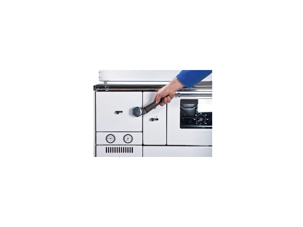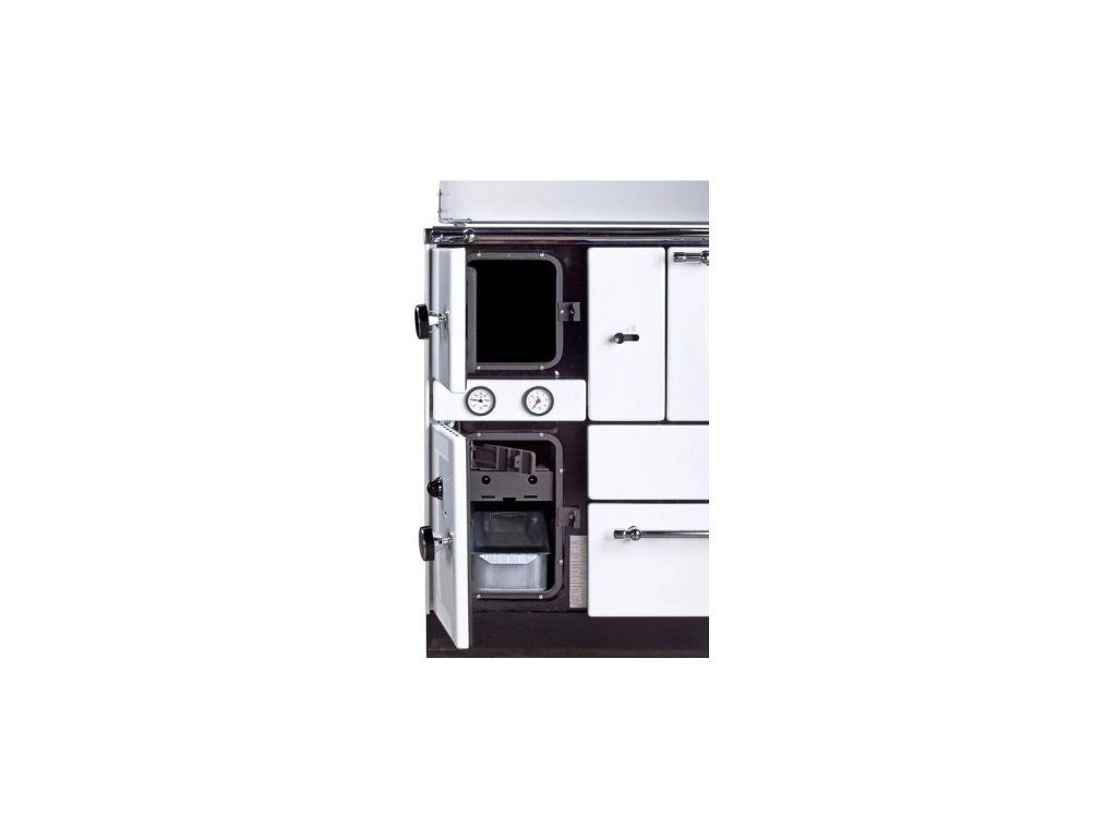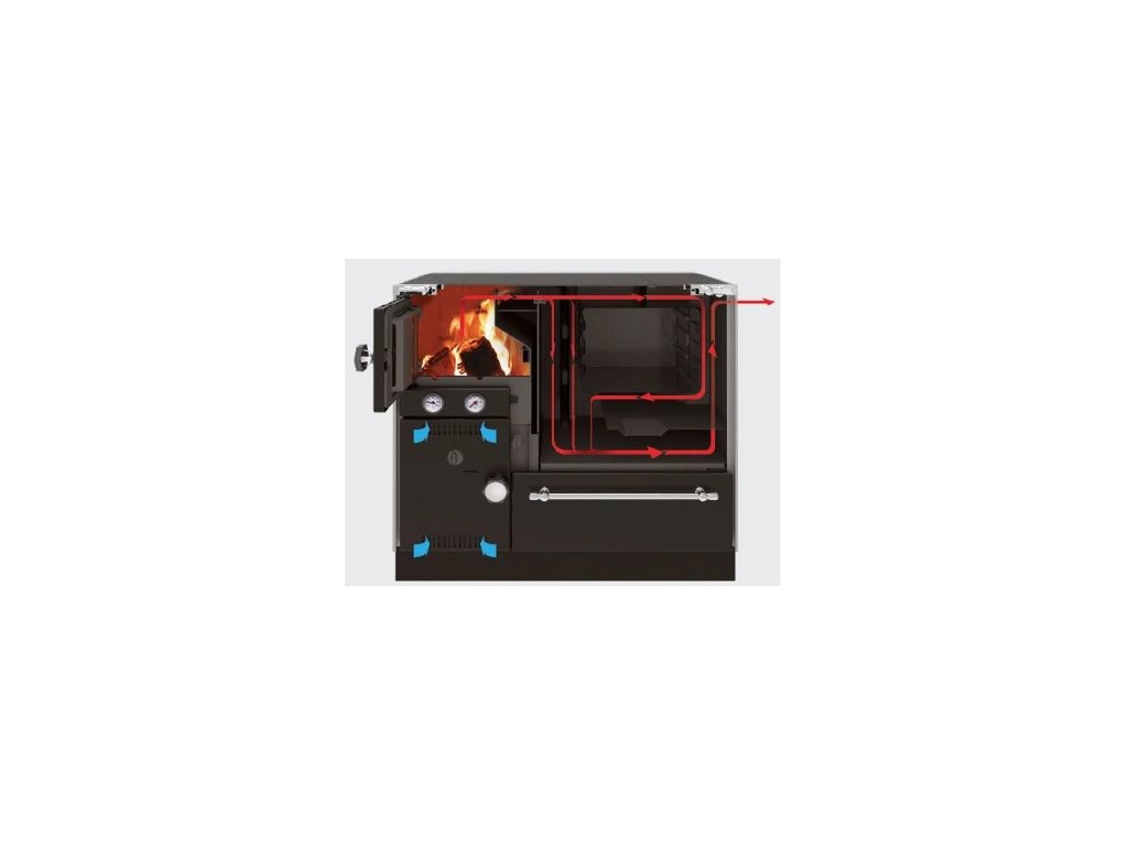 Sporák s výměníkem je určený pro vytápění s napojením na vodní otopný systém. Ve sporáku je zabudovaný regulátor výkonu do topné soustavy. Regulace primárního spalování je umístěna na spodních dvířkách. Regulátor sekundárního spalování je umístěn na horních dvířkách. Regulace terciálního spalování je umístěna vpravo vedle horních dvířek. Sporák má integrovaný manometr a teploměr pro otopnou soustavu. Sklo trouby je dvojité osazené teploměrem. Termostat je vestavěn v samotném sporáku ve dveřích popelníku.