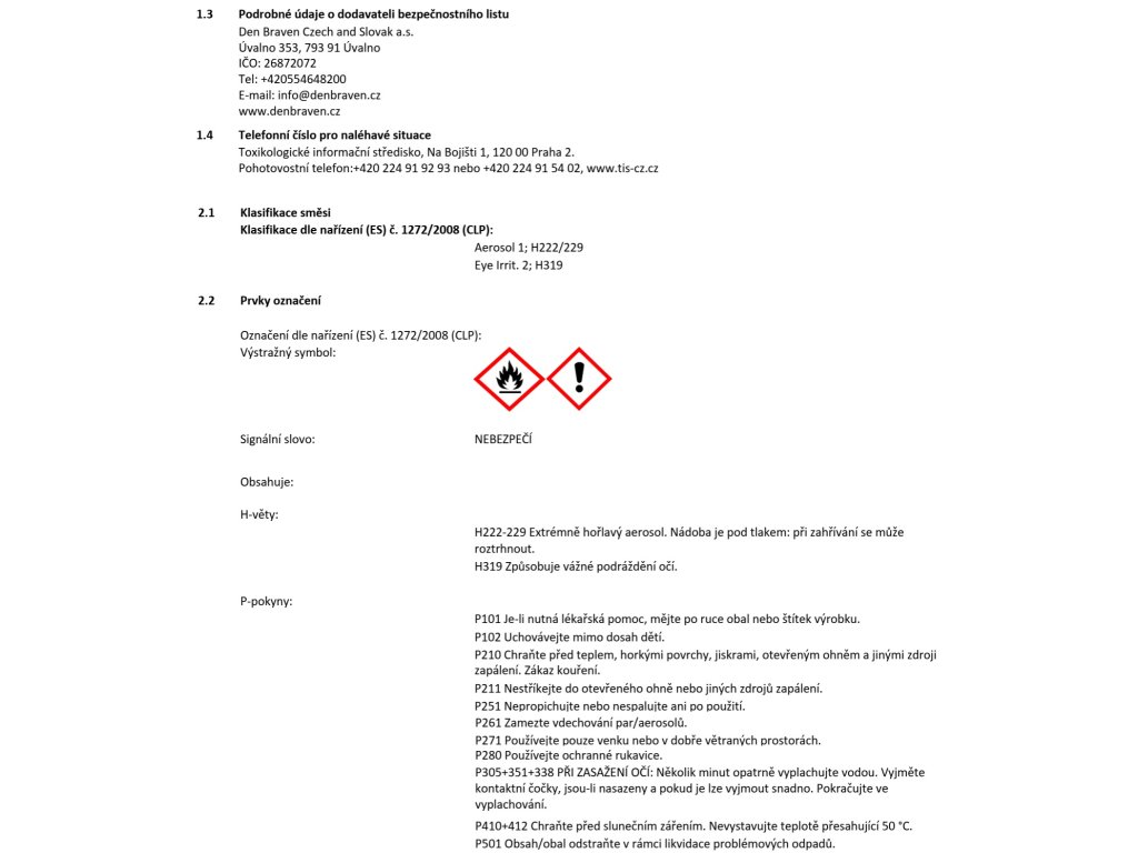 Výrobní společnost : | Den Braven Czech and Slovak a.s. |