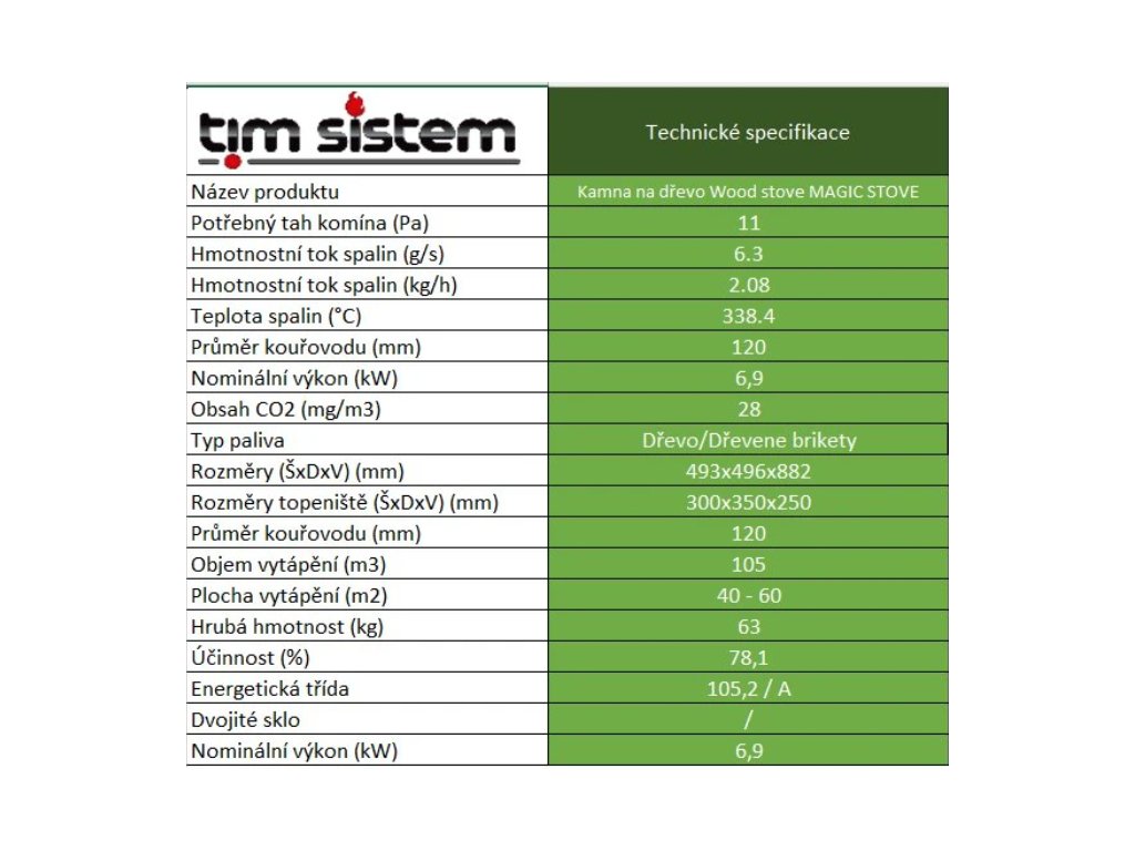 TIM SISTEM krbová kamna Magic Stove ECO černá 6,9 kW + DÁREK
