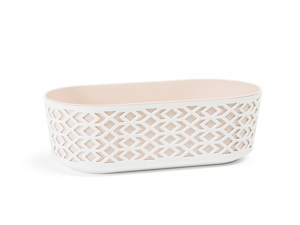 Truhlík (vklad) má béžovou barvu, obal (děrovaný truhlík) je v bílé barvě (krémovo/bílá).