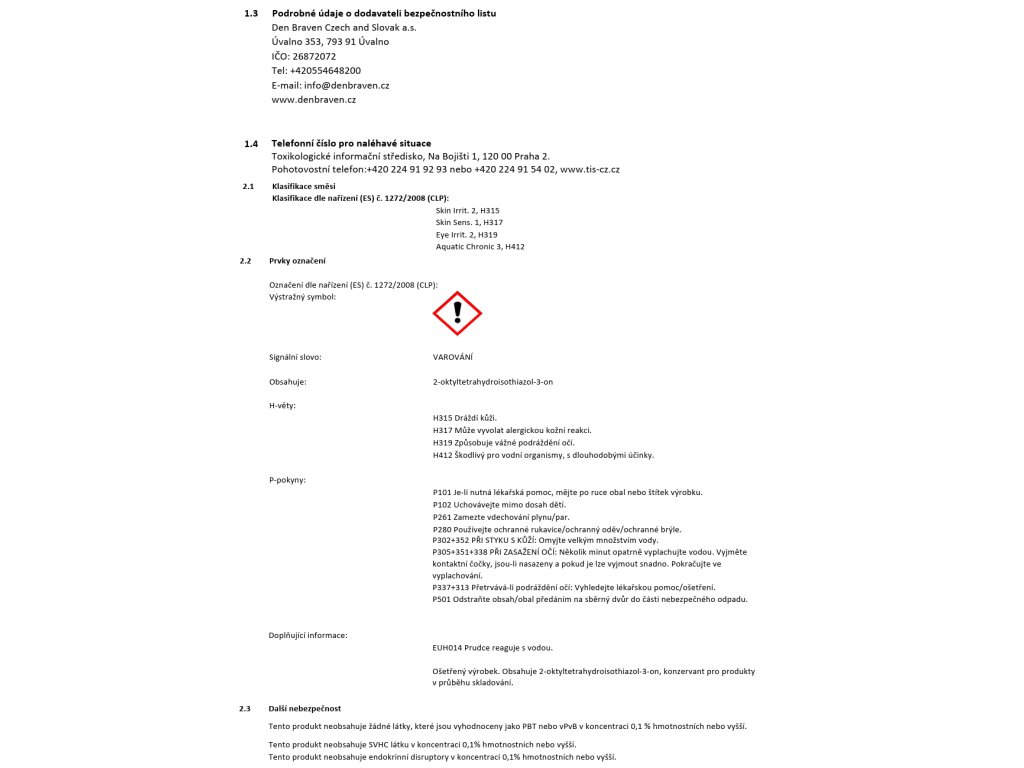 Výrobní společnost : | Den Braven Czech and Slovak a.s. |
