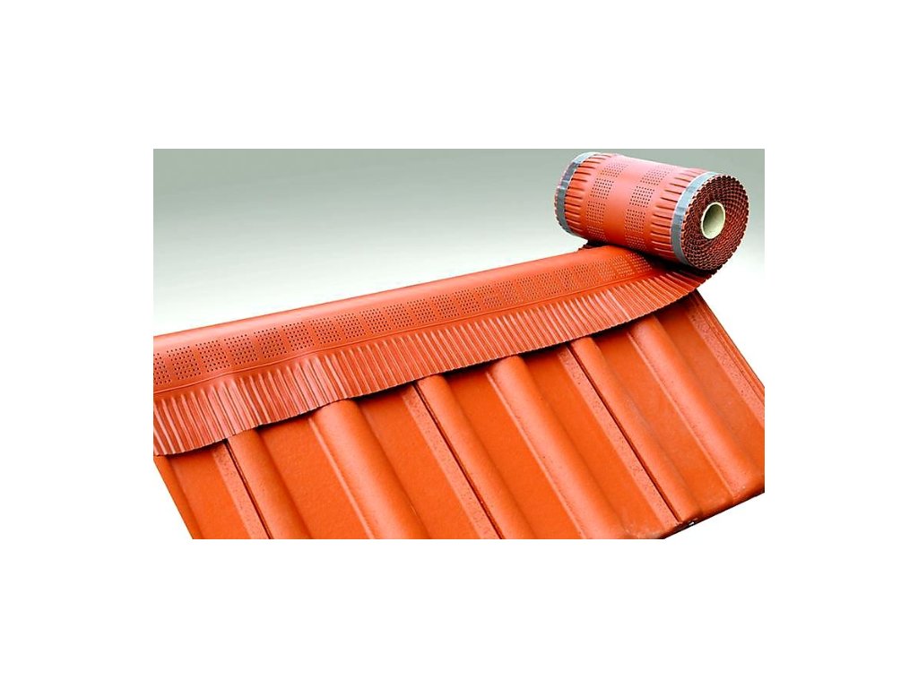 Jednovrstvý ventilační pás hřebene a nároží šikmých střech, zhotovená z profilovaného hliníkového plechu se speciálními ventilačními otvory. Na pásech je po stranách butylkaučuková lepící páska. Současně obsahuje speciální přísady, které zvyšují odolnost proti UV záření až na 6 měsíců.