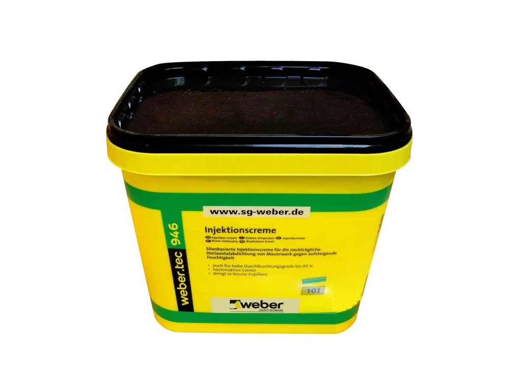 Hydrofobizující injektáž. Krémová injektáž. Krémová injektážní pasta. K dodatečné horizontální izolaci ve zdivu proti vzlínající vlhkosti pomocí beztlakové injektáže do vyvrtaných otvorů.