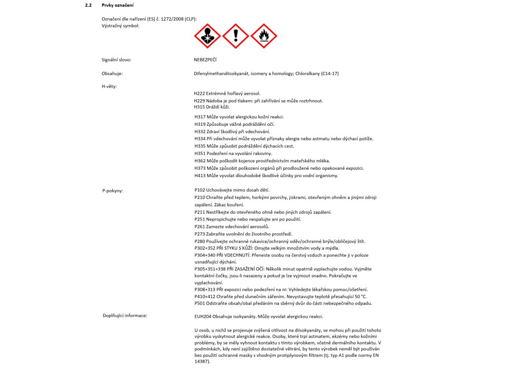 - před použitím za nízkých teplot je nutné pěnu natemperovat při pokojové teplotě po dobu min. 1 hodiny
