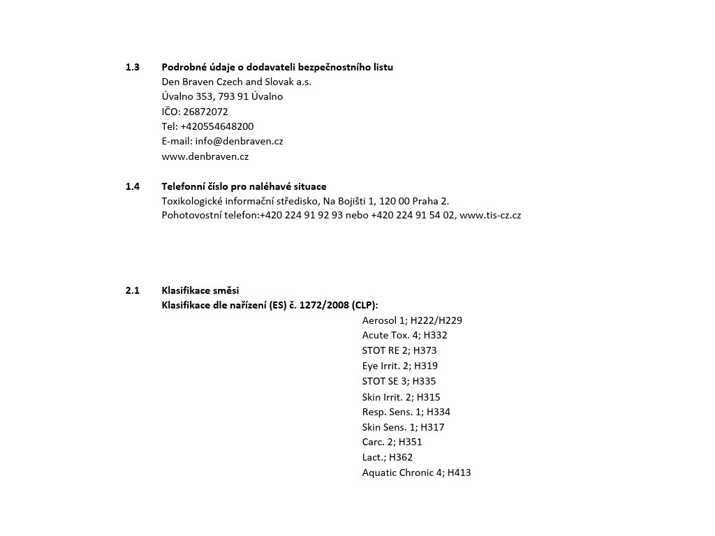 | Výrobní společnost : | Den Braven Czech and Slovak a.s. |