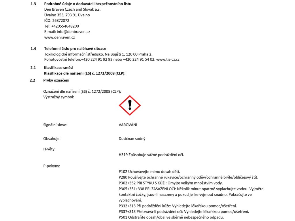 Výrobní společnost : | Den Braven Czech and Slovak a.s. |